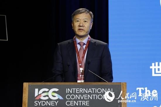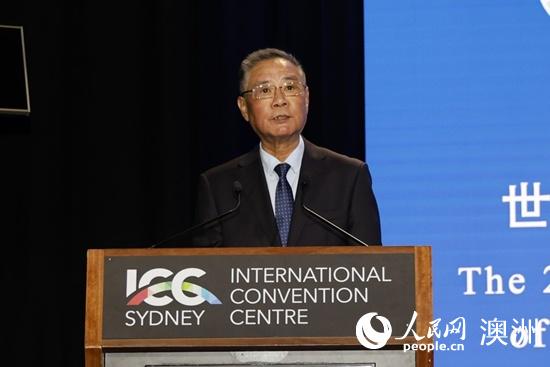 中国驻悉尼总领事王愚宣读中国驻澳大利亚大使肖千的贺信(图片由主办方提供)