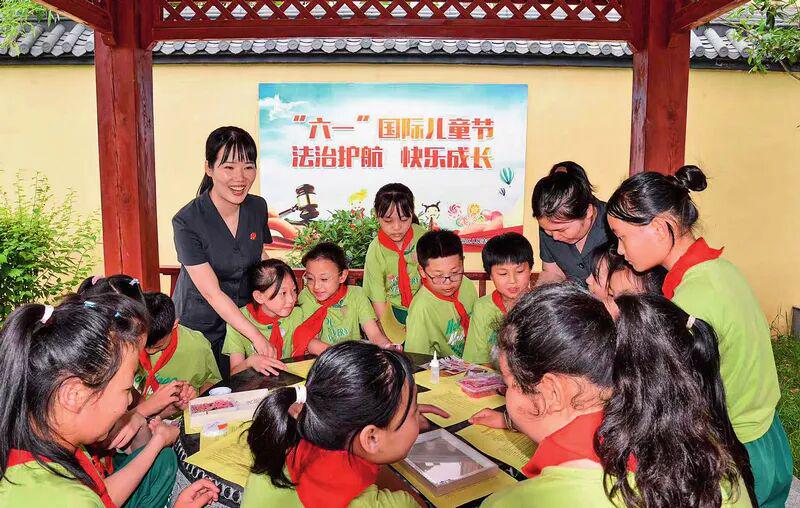 陕西省西安市中级人民法院少年法庭联合西安市鄠邑区人民法院少年法庭,邀请留守儿童走进法庭,与“法官妈妈”共度“六一”国际儿童节 供图 陕西省高级人民法院